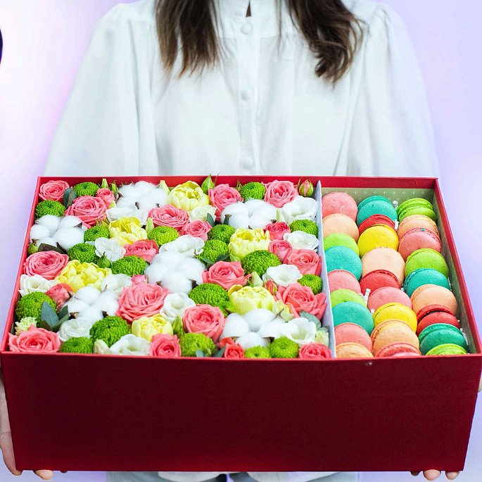 - Если букет в коробке с губкой, подливайте в неё немного воды каждый день, чтобы она не высыхала