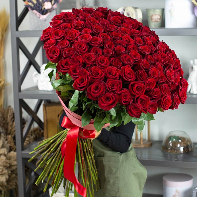 - Роза красная премиум Эквадор, 101 шт.