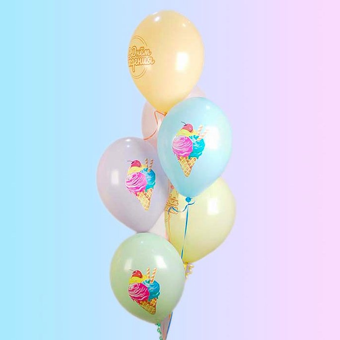 Шар гелиевый "С Днем Рождения", принт "Мороженое" разноцветный.Обработка Hi-Float для продления полета шара.